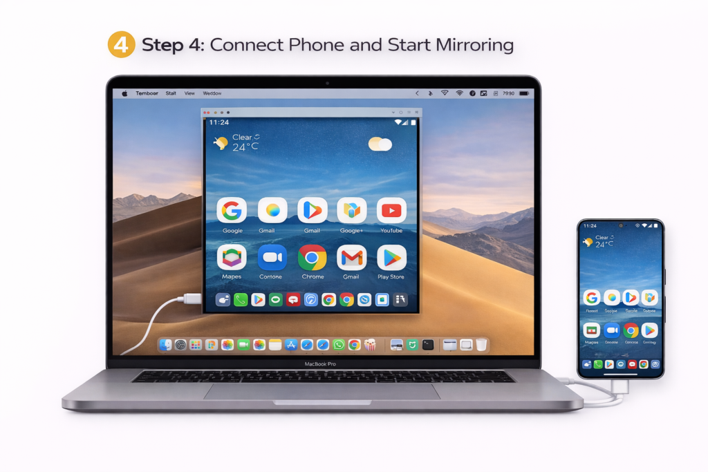 Step 4: Connect Phone and Start Mirroring
